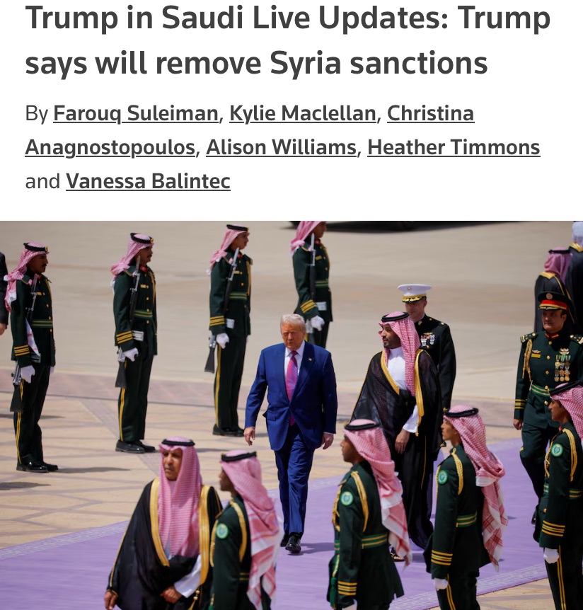 Trump says to end Syria sanctions at Saudi forum – https://www.reuters.com/world/trump-saudi-arabia-visit-live-president-begins-middle-east-tour-boost-us-gulf-2025-05-13/