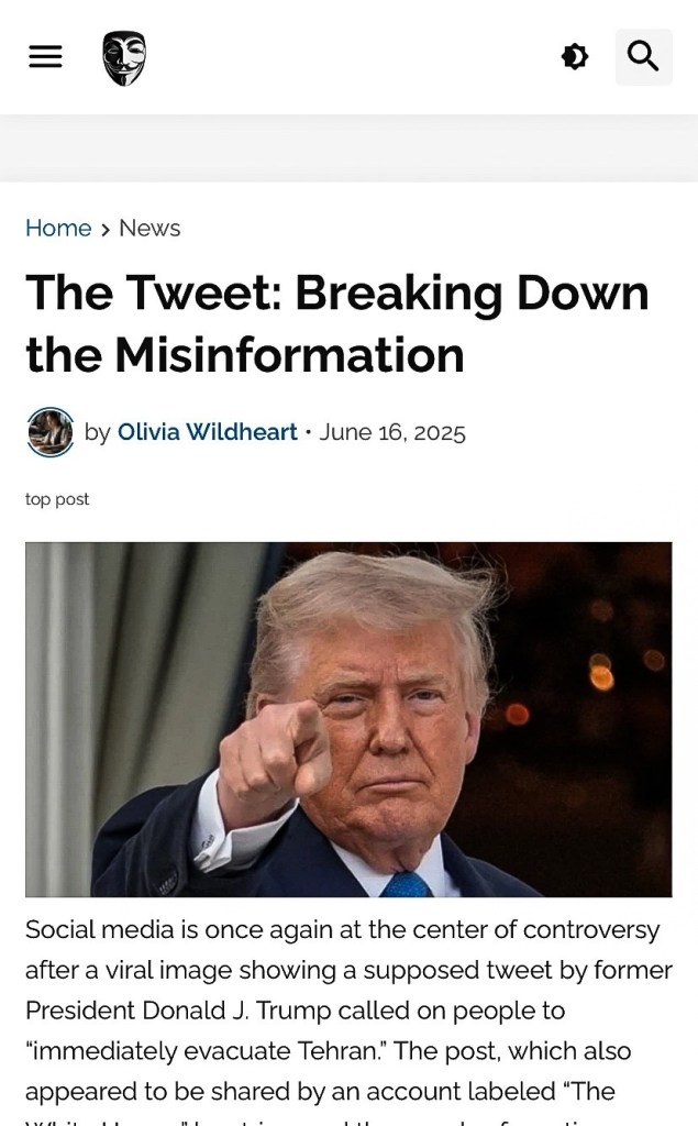 Social media is once again at the center of controversy after a viral image showing a supposed tweet by former President Donald J. Trump called on people to “immediately evacuate Tehran.” The post, which also appeared to be shared by an account labeled “The White House,” has triggered thousands of reactions… but it turns out the tweet never actually happened. In today’s age of artificial intelligence, deepfakes, and rapid misinformation, it’s easier than ever for a fake image to look real. That’s exactly what seems to have happened here. What Did the Tweet Claim?The viral image claims Trump wrote:“Iran should have signed the ‘deal’ I told them to sign. What a shame, and waste of human life. Simply stated, IRAN CAN NOT HAVE A NUCLEAR WEAPON. I said it over and over again! Everyone should immediately evacuate Tehran!” The post was shown as being liked and shared hundreds of thousands of times, giving it an illusion of credibility and virality. 🚨No evidence exist.As of this writing, there is no verified record of Donald Trump posting that message on X (formerly Twitter)—either on his current active accounts or archived ones. Neither has the official White House or any government communication channels released this post. In fact, basic reverse image searches and tweet history tools reveal that no such tweet has ever existed. That confirms the tweet is fabricated, likely created using simple image editing software or AI-generated layouts.
