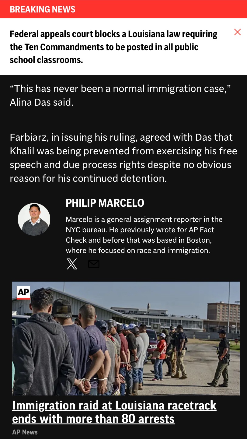 NEW YORK (AP) — A federal judge on Friday ordered the U.S. government to free former Columbia University graduate student Mahmoud Khalil from the immigration detention center where he has been held since early March while the Trump administration sought to deport him over his role in pro-Palestinian protests. Ruling from the bench in New Jersey, U.S. District Judge Michael Farbiarz said it would be “highly, highly unusual” for the government to continue to detain a legal U.S. resident who was unlikely to flee and hadn’t been accused of any violence. In reaching his decision, he said Khalil is likely not a flight risk and “is not a danger to the community. Period, full stop.” He ordered Khalil released from a detention center in rural Louisiana later Friday. The government had “clearly not met” the standards for detention, he said later in the hourlong hearing, which took place by phone.Khalil was the first arrest under President Donald Trump ’s crackdown on students who joined campus protests against Israel’s devastating war in Gaza. U.S. Secretary of State Marco Rubio has said Khalil must be expelled from the country because his continued presence could harm American foreign policy. Farbiarz had ruled earlier that the government couldn’t deport Khalil on those grounds, but gave it leeway to continue pursuing a potential deportation based on allegations that he lied on his green card application. Khalil disputes the accusation that he wasn’t forthcoming on the application. His lawyers say the Trump administration is simply trying to crack down on free speech. The judge noted Khalil is now clearly a public figure given his prominence during the campus protests and since his detainment. Khalil’s lawyers had asked that he either be freed on bail or, at the very least, moved from a Louisiana jail to New Jersey so he can be closer to his wife and newborn son, who are both U.S. citizens. Khalil’s wife, Dr. Noor Abdalla, said following the ruling that she can finally “breathe a sigh of relief” after her husband was detained for three months. “We know this ruling does not begin to address the injustices the Trump administration has brought upon our family, and so many others,” she said in a statement provided by Khalil’s lawyers. “But today we are celebrating Mahmoud coming back to New York to be reunited with our little family.” The judge’s decision comes after several other scholars targeted for their activism have been released from custody, including another former Palestinian student at Columbia, Mohsen Mahdawi; a Tufts University student, Rumeysa Ozturk; and a Georgetown University scholar, Badar Khan Suri. Khalil was detained on March 8 at his apartment building in Manhattan over his participation in pro-Palestinian demonstrations The international affairs graduate student isn’t accused of breaking any laws during the protests at Columbia. He served as a negotiator and spokesperson for student activists and wasn’t among the demonstrators arrested, but his prominence in news coverage and willingness to speak publicly made him a target of critics. The Trump administration has argued that noncitizens who participate in such demonstrations should be expelled from the country as it considers their views antisemitic. The judge noted Khalil has no criminal record and the government has put forward no evidence to suggest he’s been involved in violence or property destruction. During the court hearing, lawyers for the Trump administration argued that Farbiarz simply didn’t have jurisdiction to decide on the release request. They argued for continued detention based on the grounds that Khalil omitted information from his green card application. But Khalil’s lawyer argued that “retaliatory detention is the government’s goal.” “This has never been a normal immigration case,” Alina Das said. Farbiarz, in issuing his ruling, agreed with Das that Khalil was being prevented from exercising his free speech and due process rights despite no obvious reason for his continued detention.