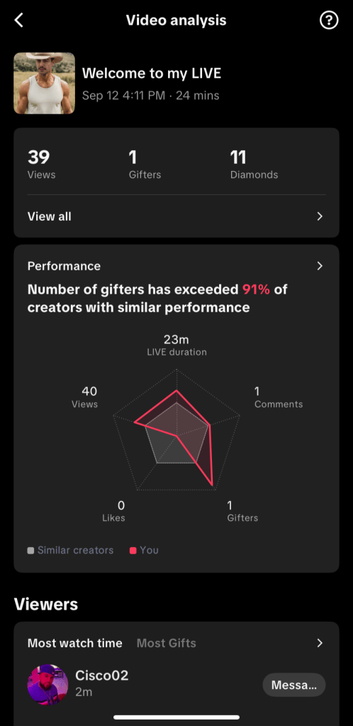 - A superfan named Cisco02, who watched, gifted, and resonated